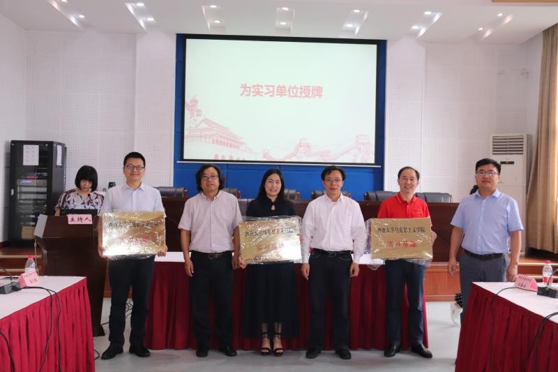 为各个实习单位授牌。