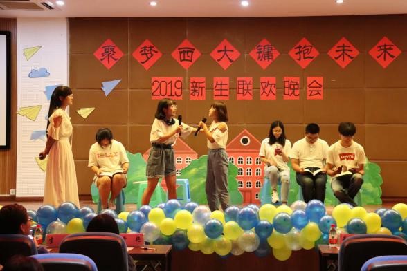 相逢是今夜的歌,相知是今夜的缘。9月20日晚19:30,以“聚梦西大,镛抱未来”为主题的新生联欢晚会在学院505报告厅举行。莅临本次晚会的有学院院长、党委副书记白显良教授,学院党委副书记张梅教授,学院副院长吴艳东教授,学院党委副书记、2019级本科新生辅导员曾艳老师,学院2019级非师一班班主任史君老师学院及2019级非师二班班主任陈玲老师。