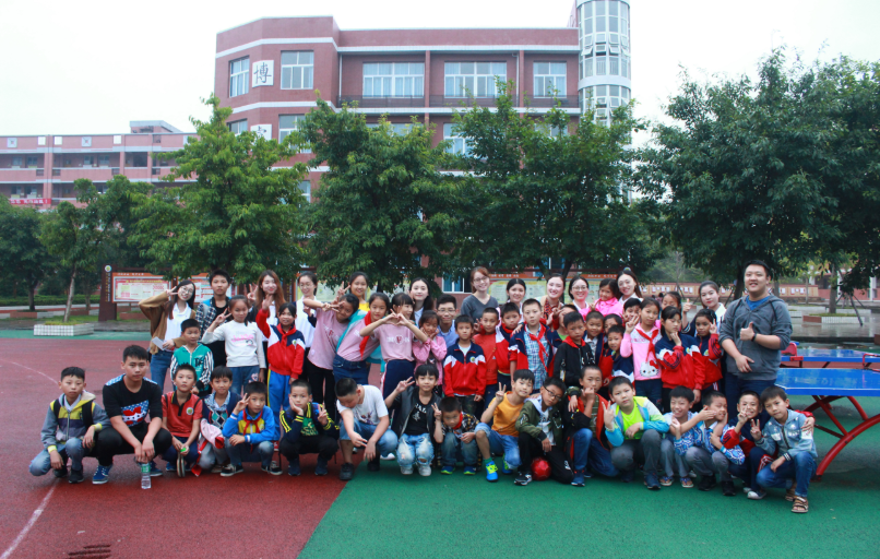 新田镇小学是重庆市农村留守儿童教育实验的项目学校,目前留守儿童占全校60%左右,住校留守儿童80余人。队员们立足保存五年且不断更新的留守儿童档案,结合实地调研,针对不同年级不同家庭情况的留守儿童,量身定制专题班会和团辅活动。“沟通与表达”班会上队员们模拟校园生活中发生冲突矛盾的情境,教孩子们如何化险为夷。并以“你比我猜”等游戏让孩子们领会正确运用肢体语言的技巧;“感恩之心”团辅活动采取感恩故事分享+手语舞视频的形式,首先队员和孩子们一起分享老师对自己的关怀,接着孩子们在手语舞学习中感悟父母生养之恩、老师培育之恩;“传统节日知多少”班会通过梳理中国主要的传统节日文化,让学生了解每个节日传统习俗的来历,了解更多的灿烂中华文化。“节约环保”班会让一二年级学生观看垃圾成堆导致的危害的视频,再以图片和游戏形式帮助学生识别可回收垃圾,拒绝资源浪费,树立环保意识。