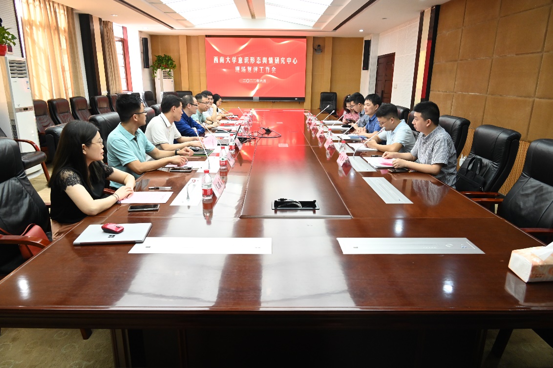 为进一步规范重庆市意识形态舆情研究基地规范管理,6月30日上午,必赢3003no1线路检测中心意识形态舆情研究中心现场复评工作会在学院310会议室召开。中共重庆市委宣传部舆情信息处处长邓华,中共重庆市委宣传部舆情信息处干部牟雄剑、高英策、涂思宇,江北区委宣传部干部徐娇等领导专家莅临指导;必赢3003no1线路检测中心党委宣传部、党委网络工作部部长黄杰,必赢3003no1线路检测中心院长白显良,必赢3003no1线路检测中心党委常务副书记廖晓衡,必赢3003no1线路检测中心党委宣传部、党委网络工作部副部长吴靖,必赢3003no1线路检测中心副院长王丰,必赢3003no1线路检测中心意识形态舆情研究中心研究员王绍霞、张晓渝参加会议。会议由学院常务副书记廖晓衡主持。