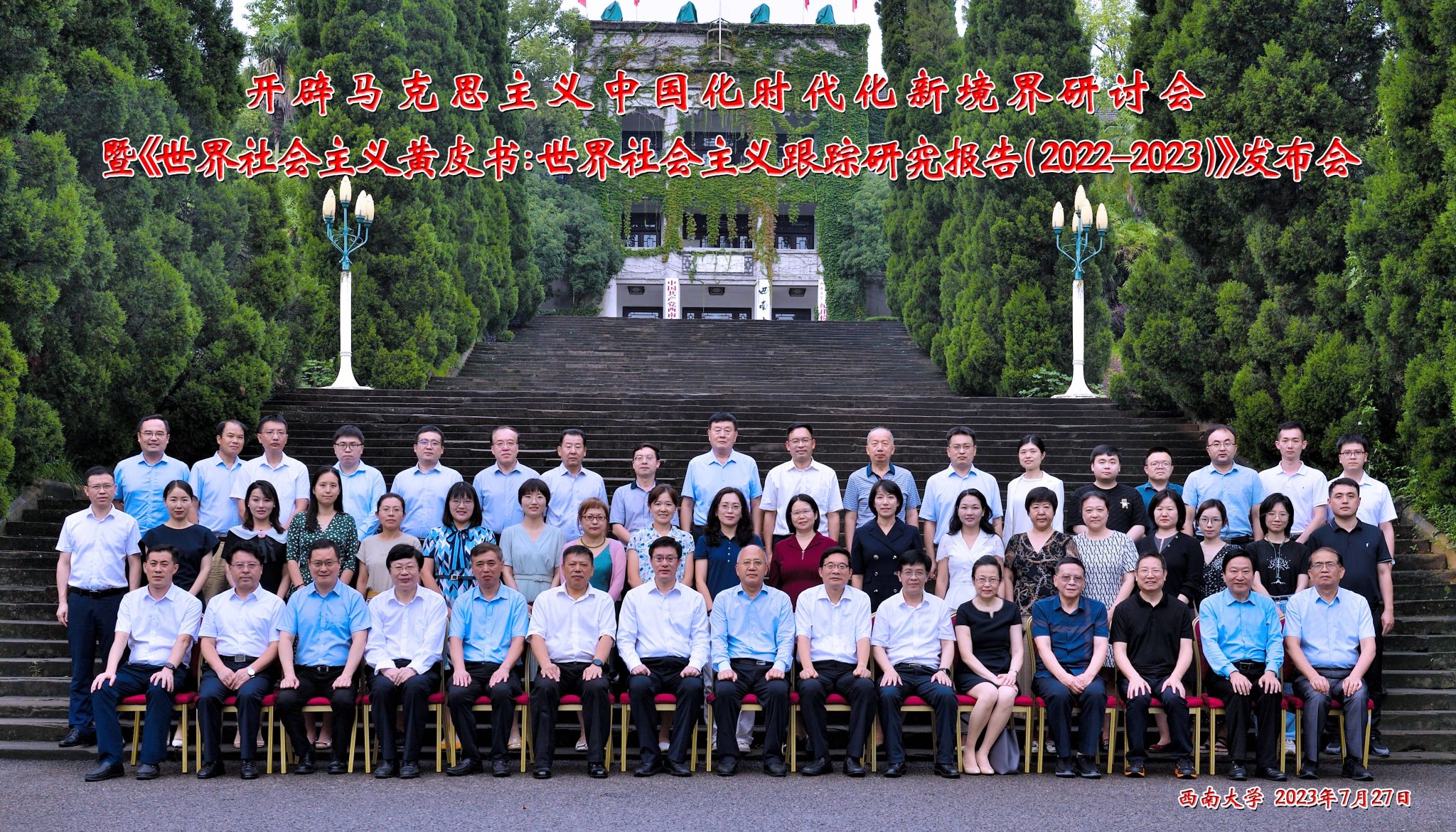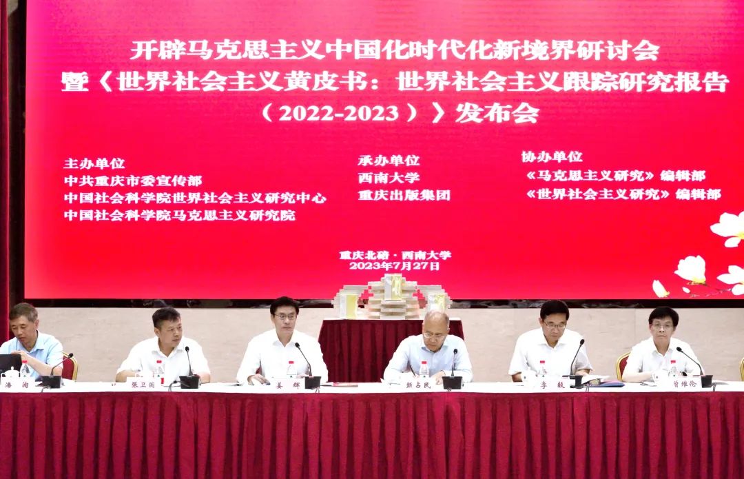 2023年7月27日,由中共重庆市委宣传部、中国社会科学院世界社会主义研究中心和中国社会科学院马克思主义研究院共同主办,必赢3003no1线路检测中心、重庆出版集团承办,《马克思主义研究》编辑部、《世界社会主义研究》编辑部协办的开辟马克思主义中国化时代化新境界研讨会暨《世界社会主义黄皮书:世界社会主义跟踪研究报告(2022—2023)》发布会在必赢3003no1线路检测中心顺利召开。这次大会是在深入开展学习贯彻党的二十大精神,纵深推进学习贯彻习近平新时代中国特色社会主义思想主题教育时期召开的一次十分重要的会议,对不断推进马克思主义中国化时代化具有重要意义。中国社会科学院、中共中央对外联络部、中共北京市委党校、北京第二外国语学院、北京交通大学、东北大学、必赢3003no1线路检测中心等单位的专家学者,以及必赢3003no1线路检测中心部分师生代表参加了会议。