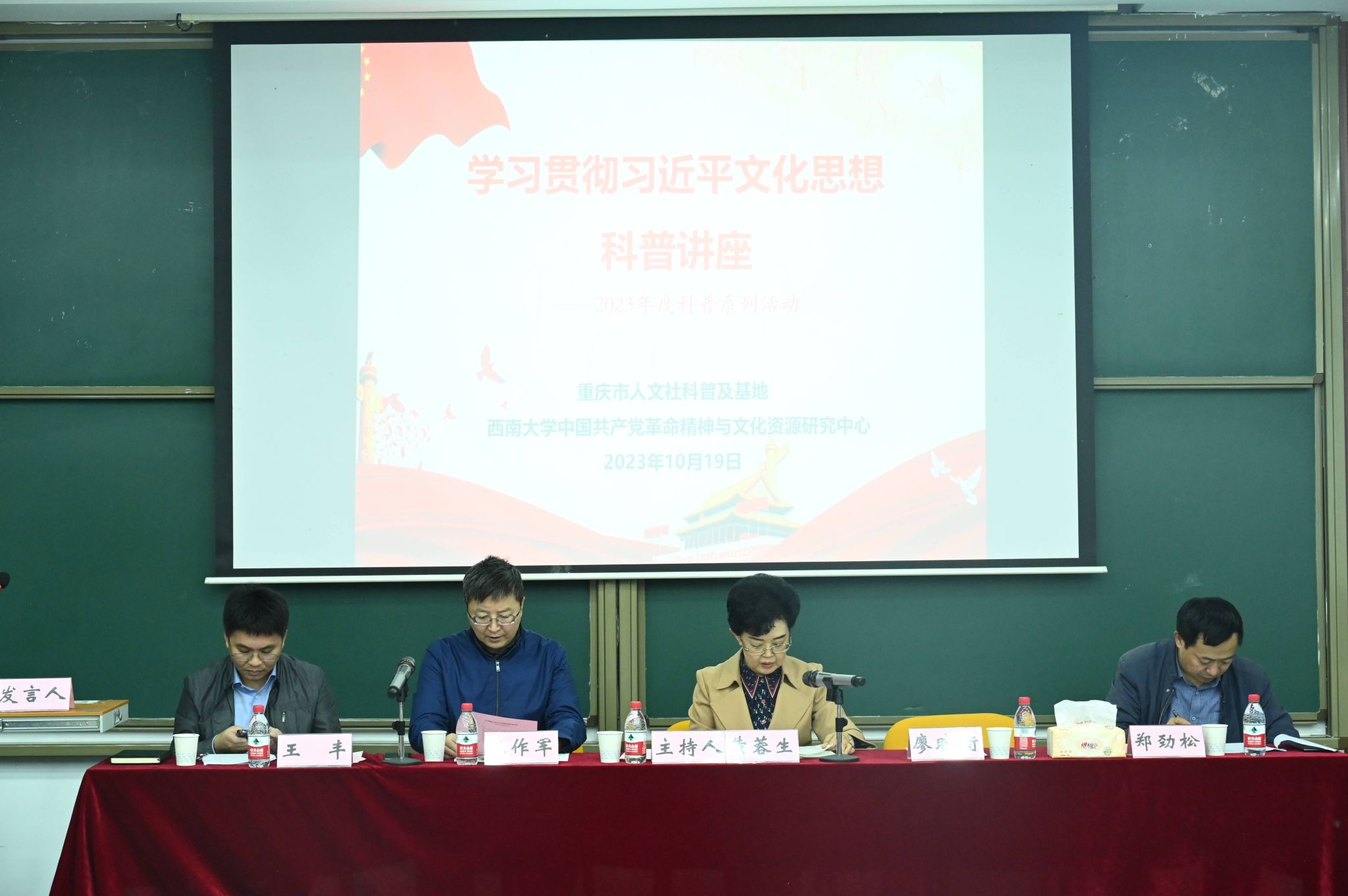 10月19日晚,重庆市人文社科普及基地、必赢3003no1线路检测中心中国共产党革命精神与文化资源研究中心2023年度科普系列活动“学习贯彻习近平文化思想科普讲座”,在国家治理学院3308多功能报告厅举行。