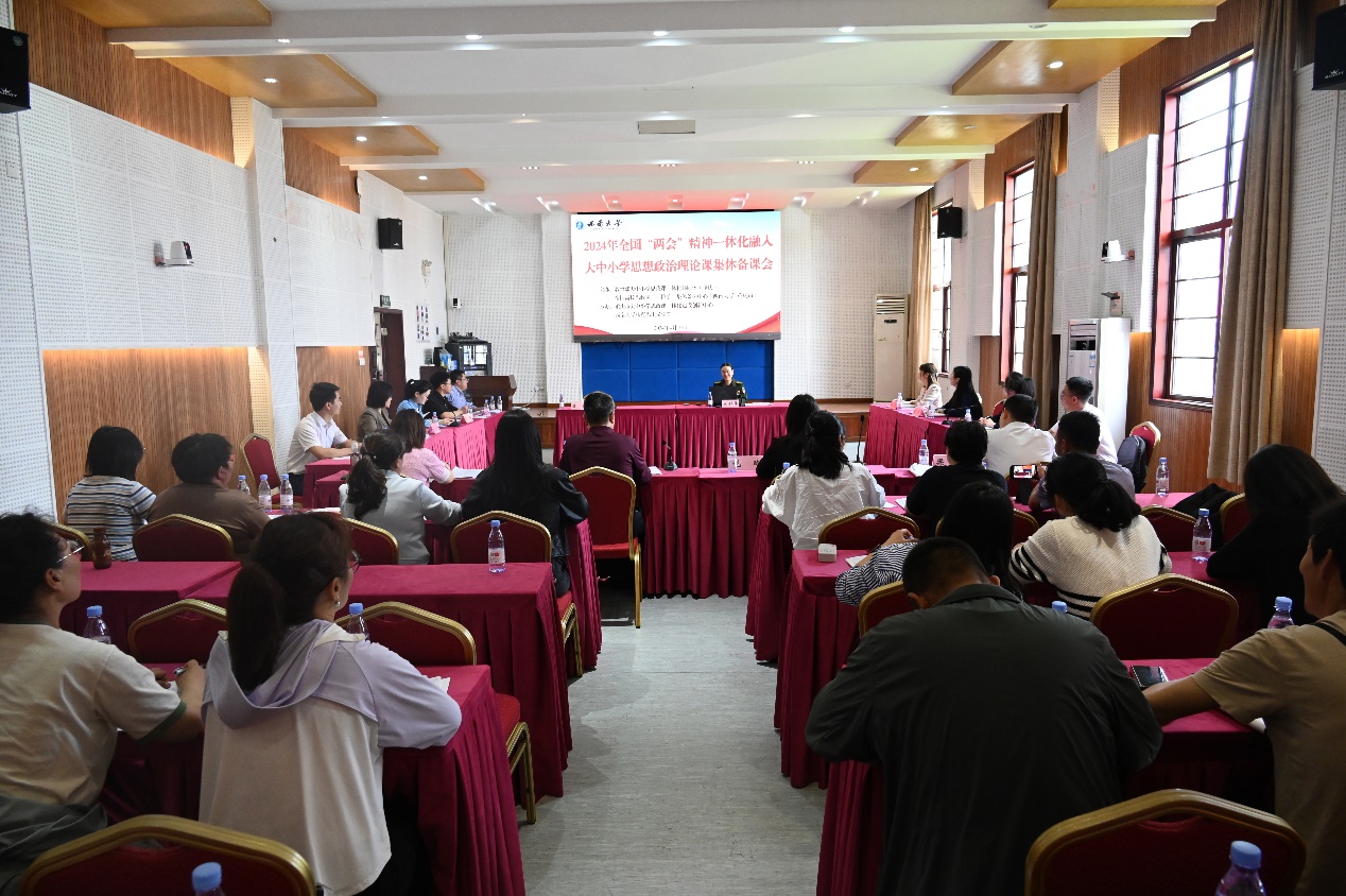 2024年4月19日下午,由教育部大中小学思政课一体化共同体(重庆)、全国高校思政课手拉手集体备课中心(必赢3003no1线路检测中心-重庆市)主办,重庆市大中小学思政课一体化建设创新中心、必赢3003no1线路检测中心必赢3003no1线路检测中心承办的大中小学思想政治理论课教师集体备课活动在学院501报告厅举办,备课活动围绕2024年全国“两会”精神一体化融入大中小学思政课教学展开。集体备课会由专家领学、备课交流、专家点评和经验分享四个板块构成。