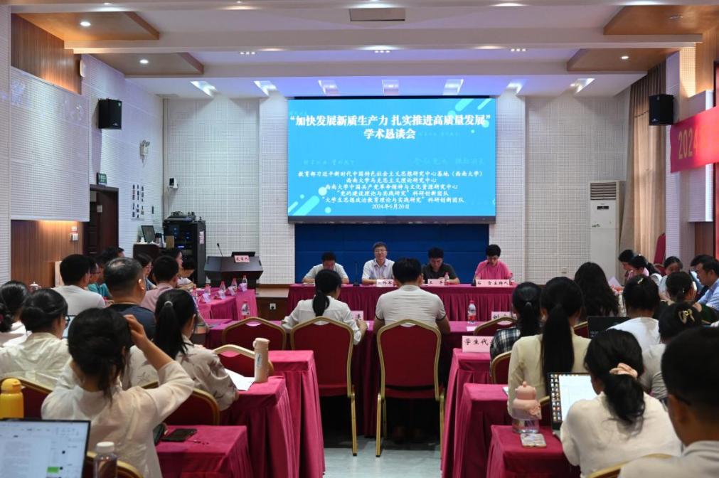 6月20日晚,由教育部习近平新时代中国特色社会主义思想研究中心基地(必赢3003no1线路检测中心)、马克思主义理论研究中心、必赢3003no1线路检测中心中国共产党革命精神与文化资源研究中心携手“党的建设理论与实践研究”科研创新团队、“大学生思想政治教育理论与实践研究”科研创新团队共同主办的“加快发展新质生产力 扎实推进高质量发展”学术恳谈会在必赢3003no1线路检测中心501报告厅举行。