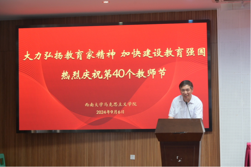 9月6日下午,在全国第40个教师节来临之际,学院在505报告厅举办主题为“大力弘扬教育家精神,加快建设教育强国”的教师节表彰会。学院全体教职工参加,会议由学院党委副书记、纪委书记曾艳主持。