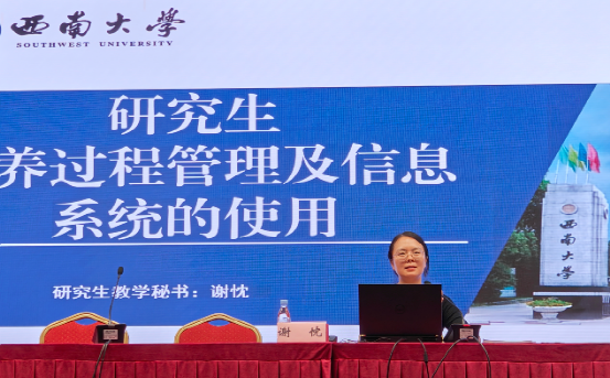靳玉军副院长在“学院研究生人才培养方案”的专题讲座中,从研究生总体情况、导师队伍、培养理念和举措、培养成效四个方面介绍了我院研究生培养与管理情况。研究生教学办公室主任兼教学秘书谢忱就“研究生培养过程管理及信息系统的使用”进行了说明。