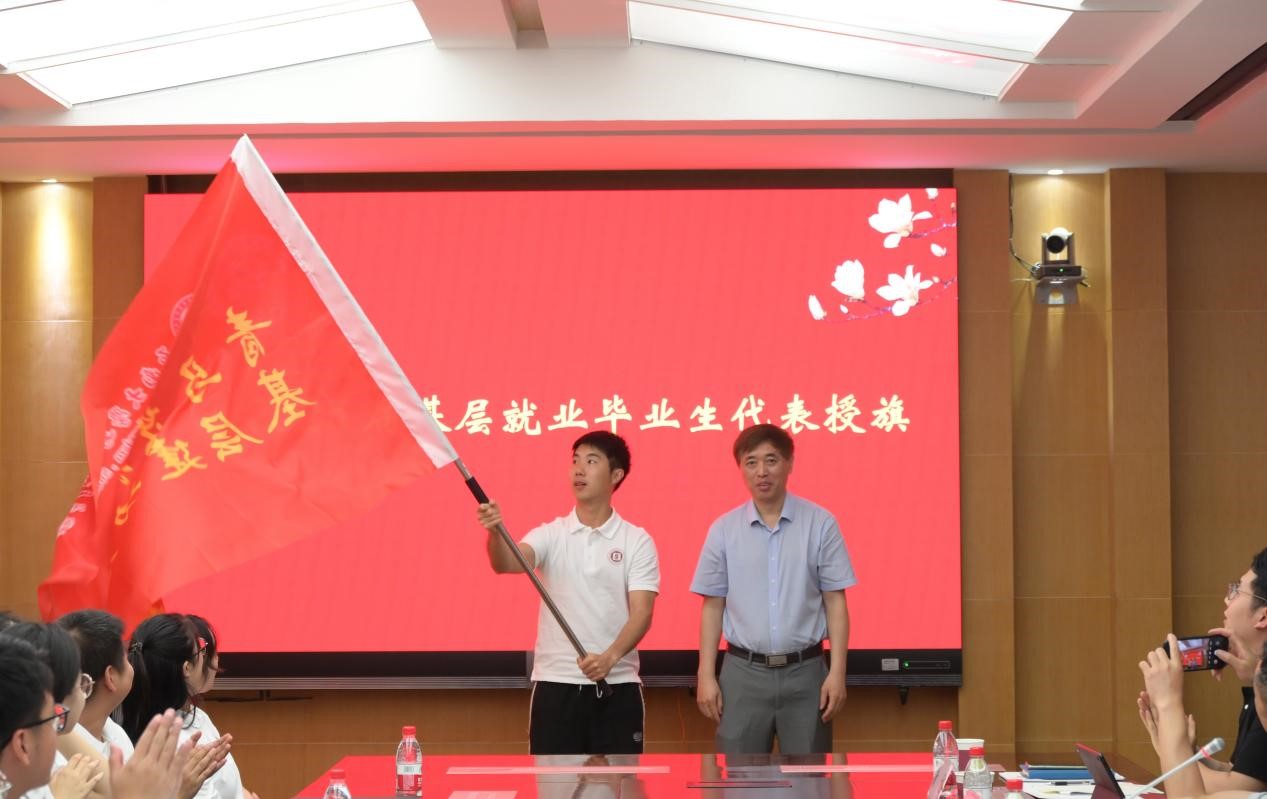 仪式上,学院院长潘洵向2025届基层就业毕业生授旗,并为基层就业毕业生赠送书籍——《习近平走进百姓家》。