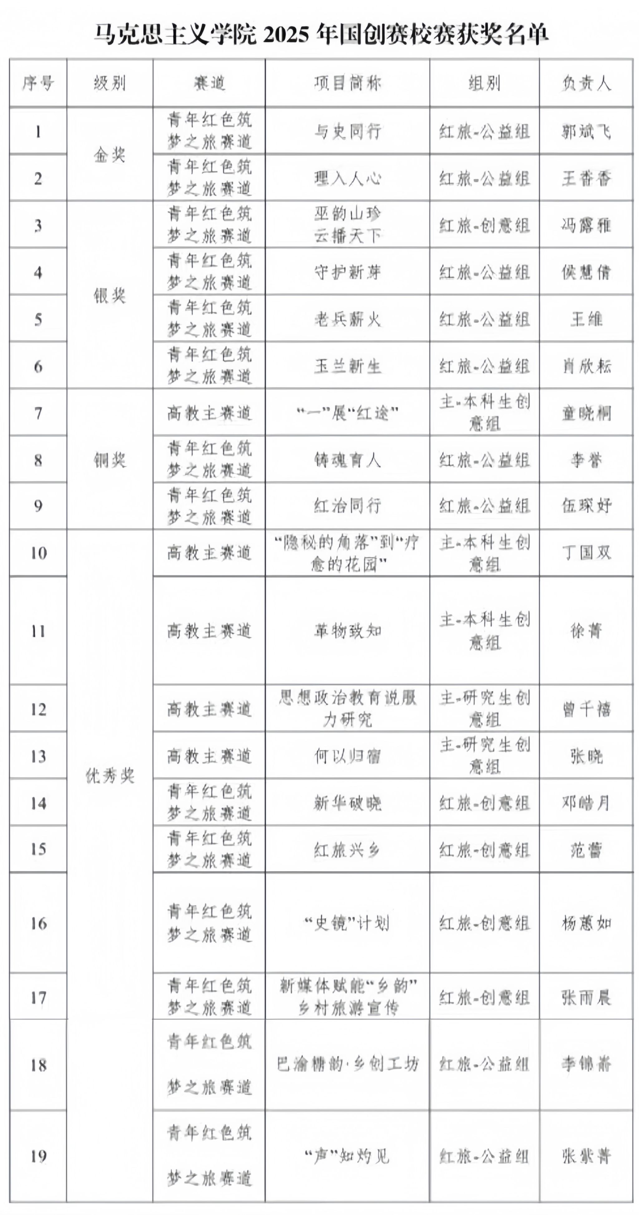 近日,必赢3003no1线路检测中心在2025年中国国际大学生创新大赛(以下简称“国创赛”)校赛中再创佳绩,捷报频传!经过激烈角逐,学院共有19个项目获奖。其中,金奖2项、银奖4项、铜奖3项、优秀奖10项,涵盖了红旅赛道和高教主赛道等多个领域。这些获奖项目不仅选题新颖、立意深远,而且紧密结合社会热点和学科前沿,充分体现了马院学子关注现实、服务社会的责任担当。