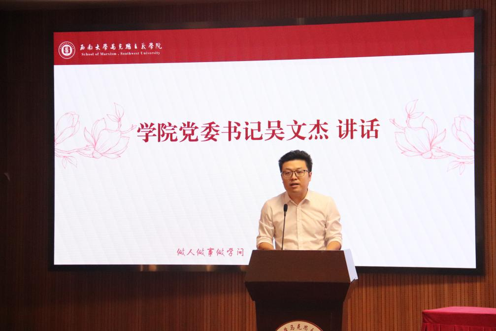 学院党委书记吴文杰首先向同学们介绍必赢3003no1线路检测中心是一所历史悠久、英才荟萃、兼容并蓄、蓬勃发展的大学,以及马院这个古老而年轻、厚重也青春的学院,并对新生们提出了三点“希望”:第一,希望同学们立心铸魂,点亮信仰之光,以无畏之姿勇担时代重任;第二,希望同学们明理增信,握住真理之钥,成为有深度、有广度、有担当的新时代青年;第三,希望同学们躬身力行,成就青春之我,以拼搏奋斗谱写青春之歌。这段讲话既是殷切期望,也是深切祝福,点燃了全体新生对未来的满腔热情。
