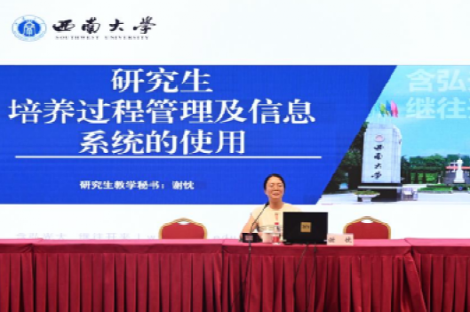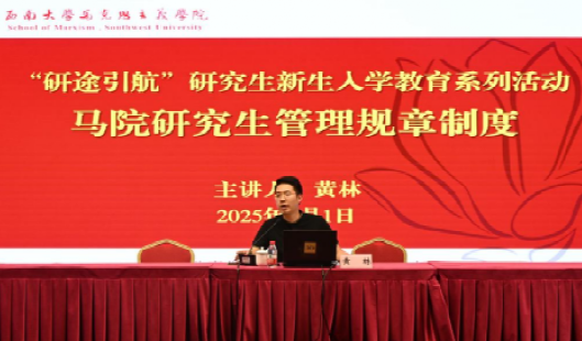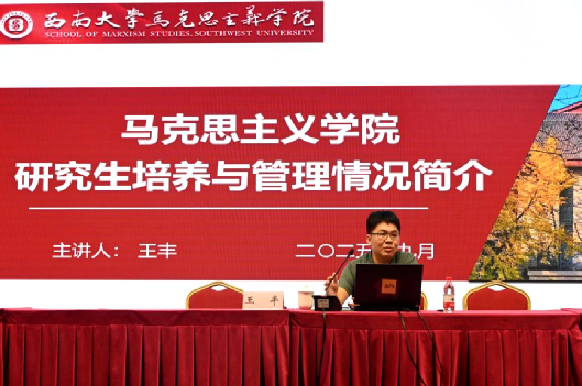 王丰副院长以“学院研究生培养和管理情况简介”为题,为新生系统梳理了马院研究生从入学到毕业的各个培养环节与学术成长路径。研究生教学办公室主任兼教学秘书谢忱就“研究生培养过程管理及信息系统的使用”进行了说明。