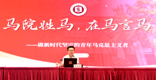 学院党委书记吴文杰以“马院姓马、在马言马——做新时代坚定的青年马克思主义者”为题,提到作为新时代马院优秀研究生需要拥有“学术思辨力”“实践创新力”“社会责任感”“心理抗压力”的核心特质,并做到“真信”“真学”“真讲”“真做”,锤炼“四个坚持”,将优秀内质外化为日常习惯。