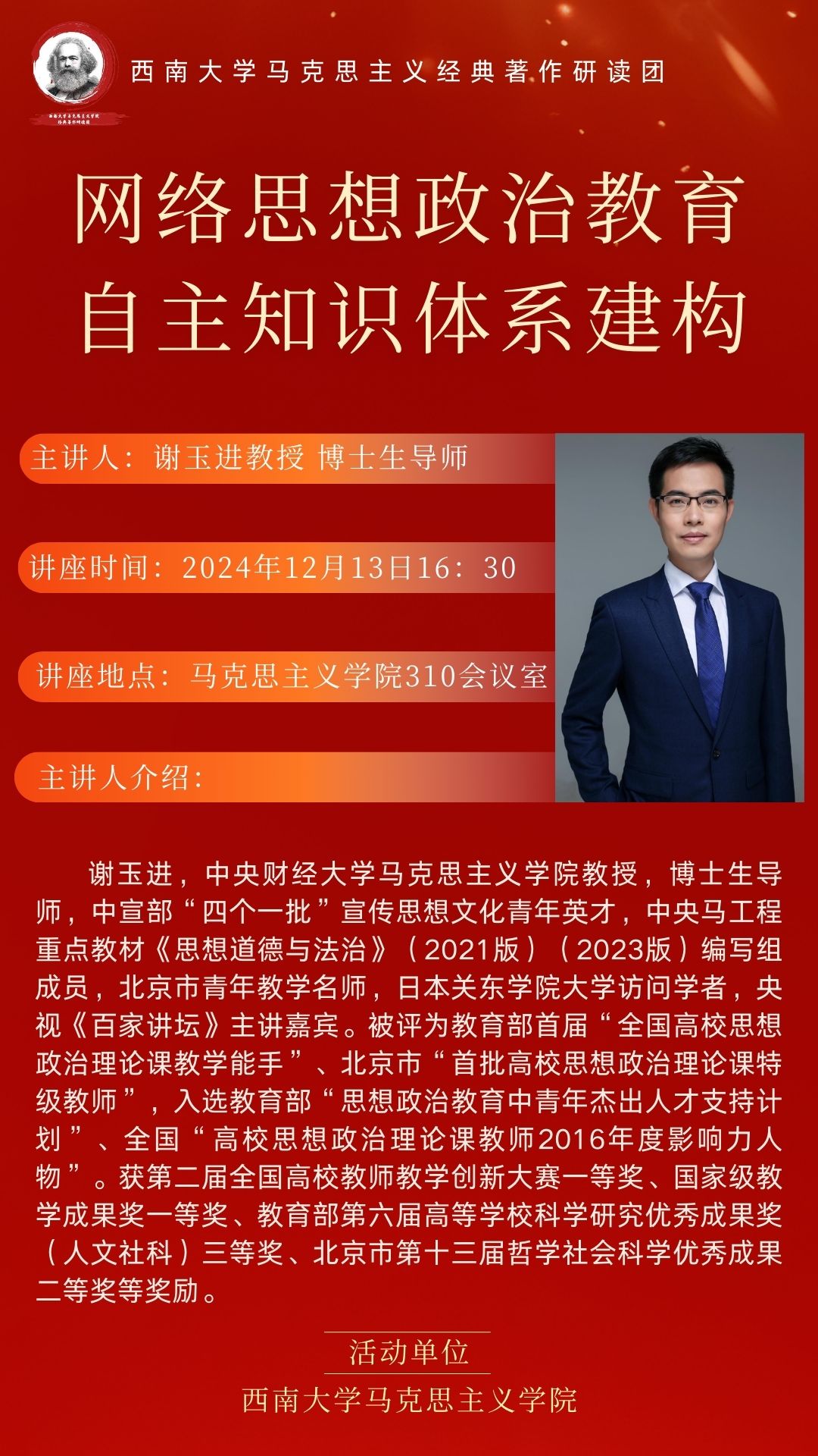 讲座题目:网络思想政治教育自主知识体系建构