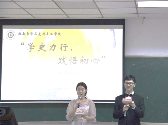 在个人分享环节,陈佳楠同学为我们讲述了在游览浙东革命老区章水镇的所思所感;吕亚璇同学则带我们重温百色起义时的英雄岁月;最后杨怡同学为我们带来了有关周逸群烈士的故事。