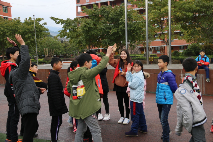 新田镇小学是重庆市农村留守儿童教育实验的项目学校,目前留守儿童占学校60%左右,住校留守儿童70人。队员们立足保存六年且不断更新的留守儿童档案,结合实地调研,针对不同年级不同家庭情况的留守儿童,量身定制专题班会和趣味活动。“我自立,我成长”班会上,队员们与一二年级孩子们一起整理自己的书包,教会他们有序整理自己的物品,从小养成良好的学习生活习惯;“说出梦想,展示自信”班会通过让三四年级学生观看“航天员之梦”的动画短片,并以“击鼓传花”游戏形式让孩子们大胆说出自己的梦想,并鼓励他们为梦想而坚持、为梦想而努力;“传统节日知多少”班会通过团队合作,知识竞猜的方式,让五六年级孩子们在了解更多灿烂中华文化的同时增强其团队合作意识。