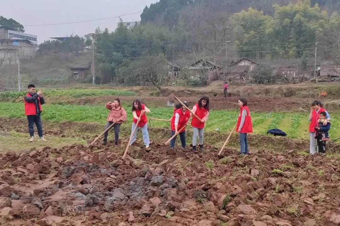 队员们中有未曾干过农活的新手,也不乏经验丰富的锄地能手,一场“能手”带动“新手”的传帮带活动在安兴乡的田野间热火朝天地展开了。队员彭德莲告诉了大家锄头的发力方式,握把、举臂、甩锄、翻土,一气呵成。“把土翻出来以后,还要用锄头把土块儿打碎,这样可以让土地更平整,庄稼可以更好的吸收养分。”