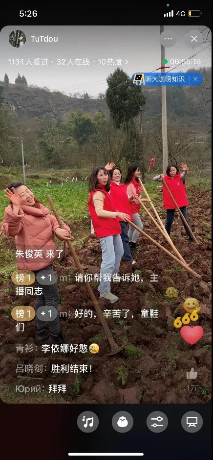 乡村振兴不仅需要青年一代的付出与努力,更需要汇聚社会更多的力量,引起人们更广泛的关注与参与。此次锄地帮扶的活动,队员们通过微信视频号、抖音等网络新媒体平台进行直播,将新时代研究生助力乡村振兴的实际行动展现给了广大网友们。观看直播的网友们纷纷弹幕留言与队员们进行互动:“谁知盘中餐,粒粒皆辛苦!”“助力乡村振兴,青年党员就是要冲在最前!”“你们劳动的样子,真美!”本次直播累计观看人数超1000人,点赞数超10000次,网友们通过直播镜头了解到了安兴乡的发展情况,并对乡村振兴战略有了更深刻的认识,取得了良好的社会效应。