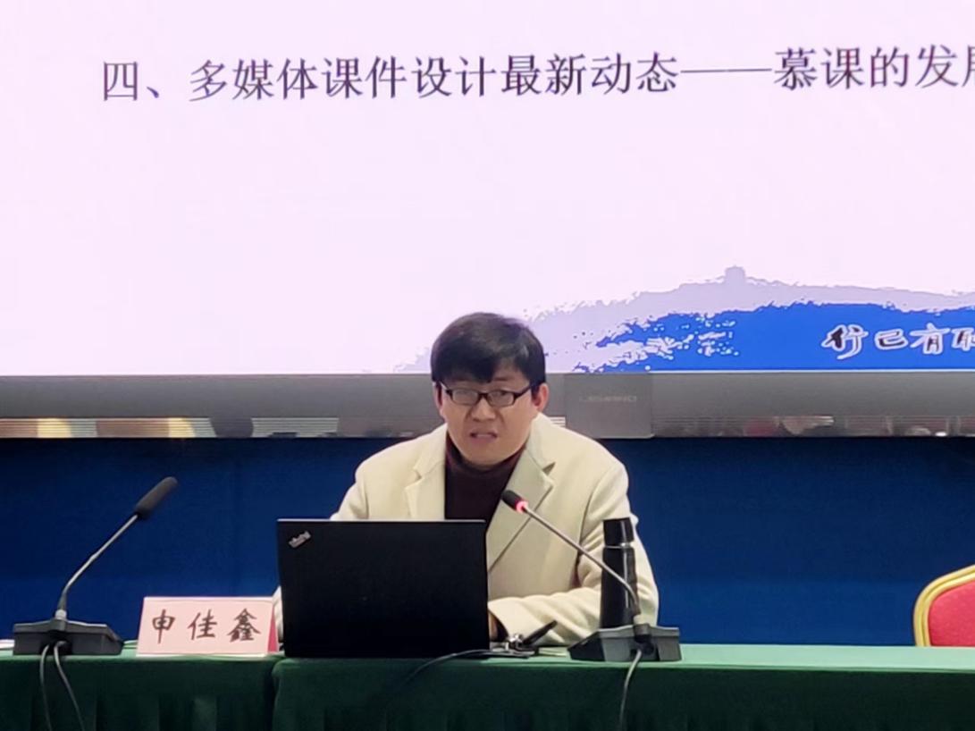 申佳鑫老师就“思想品德课多媒体课件设计”为主题,向同学们介绍丰富的实践技能培训。申老师介绍了思想品德课多媒体课件设计的涵义,并结合自身的教学经历向同学们展示出思想品德课多媒体课件对教学的积极作用,以及思想品德课多媒体课件在设计过程中的依据和要求。培训过程精彩纷呈,申老师现身说法,向同学们展现了优秀政治课教师的风采,同学们收获颇丰。