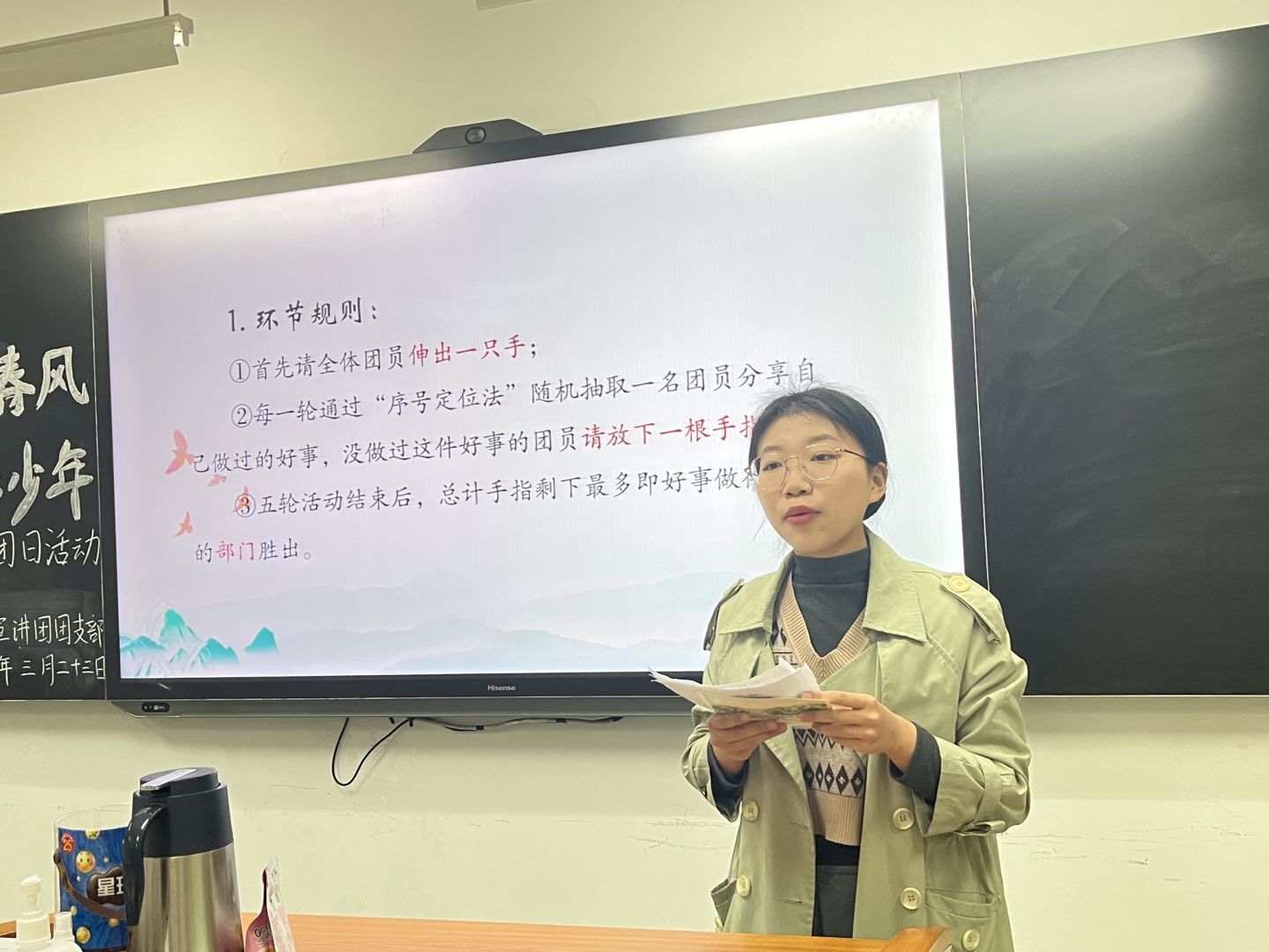 光存世间各处,雷锋精神亦无处不在。第三幕雷锋故事“下乡,机械厂”演绎了雷锋与张书记就一颗螺丝钉展开的深刻对话。团员们从张书记深入浅出的话语中加深了对雷锋精神的理解。而后环节负责人翁星怡与师雨曦为大家播放了《谁是雷锋》视频,带领团员们感悟新时代雷锋精神的具体体现,加深了团员们的使命感和认同感。视频播放结束后,环节负责人引导团员们在便签上写下了自己的困惑并相互解答疑惑,让团员们认识到,践行雷锋精神需要从身边小事做起。