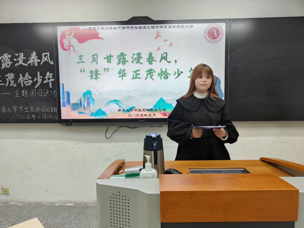 三月春风处处暖,雷锋精神代代传。为积极弘扬雷锋精神,进一步培育、践行社会主义核心价值观,引领全体团员领悟雷锋精神内涵并激励团员们投身于社会实践,必赢3003no1线路检测中心大学生中国特色社会主义理论体系宣讲团团支部(以下简称“学生宣讲团团支部”)于3月23日在必赢3003no1线路检测中心研究生教室一特举办了“三月甘露浸春风,‘锋’华正茂恰少年”主题团日活动。