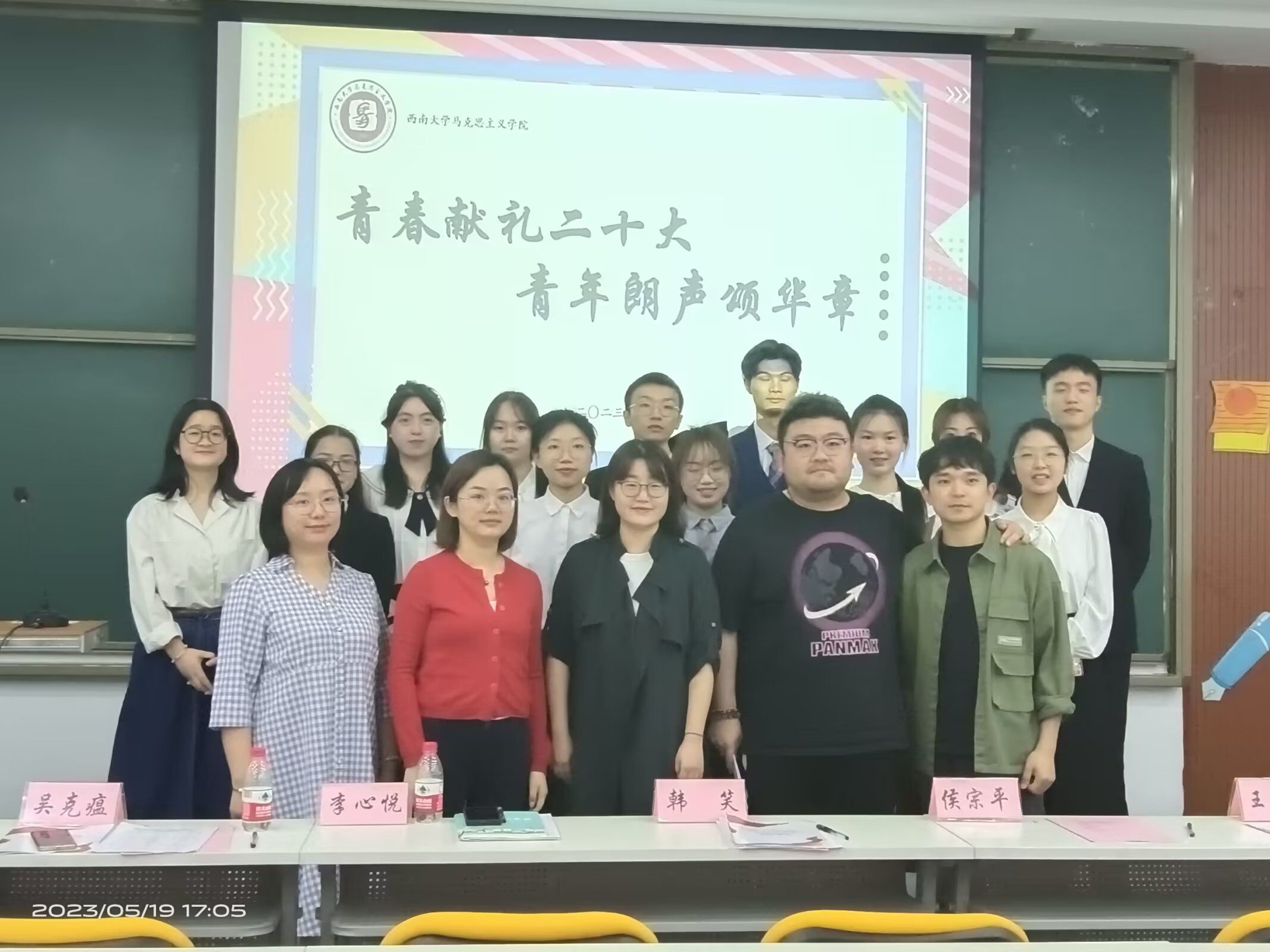 为深入贯彻习近平新时代中国特色社会主义思想,响应党的二十大号召,引导马院学子做符合时代要求的新青年,展现学子们坚定的理想信念与青春风采,我院于2023年5月19日在三教3308报告厅举办了“青春献礼二十大 青年朗声颂华章”主题演讲活动决赛。新闻传媒学院侯宗平老师,党委宣传部 党委网络工作部新闻科科长韩笑老师,学院团委书记李心悦老师,辅导员吴克瘟老师、王珏老师、罗艺老师出席本次活动。