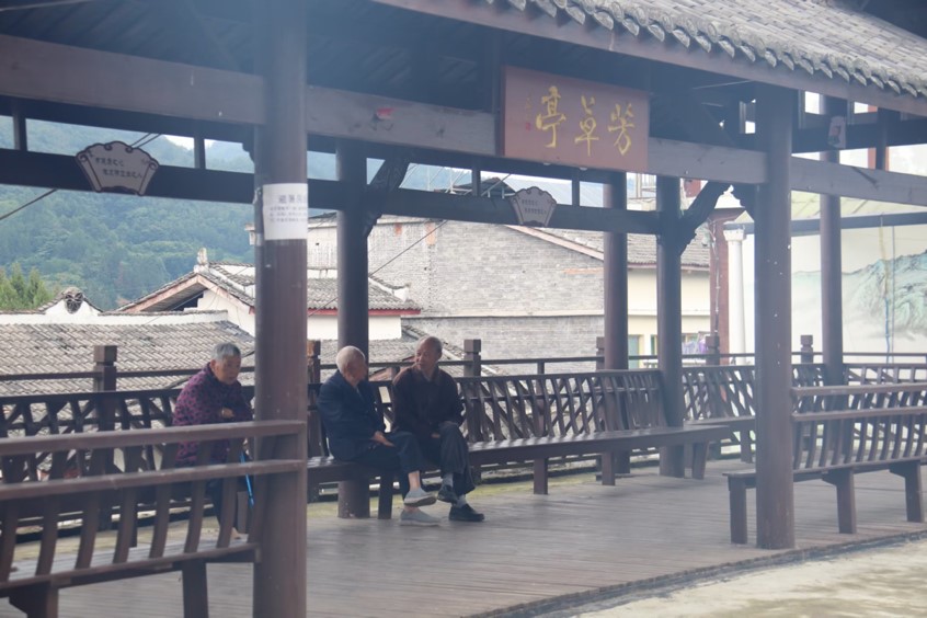走在杉坪村宽敞通畅的柏油路上,结合村委会的旧照与讲解,实践团成员无不感慨乡村变化之大。“2014年我们开始修公路,现在修了水泥路40公里,柏油路38公里。”黄主任在介绍时,语气充满了自豪。在规划发展蓝图时,杉坪村首先将重点放在了基础设施建设上,着力实施“四大工程”,致力于使农民“增收有门路,致富有产业”。一是基础设施改善工程,修、扩建水泥路、油路、灌溉渠,完善道路、水利与电力建设;二是聚焦乡村旅游致富工程,根据自身特点与发展需求,利用村庄田地开发不同的旅游观光项目,建设好基础旅游设施;三是公共文化设施建设,杉坪村十分注重村民生活水平,通过完善公共文化体育设施,满足村民自我发展需求。