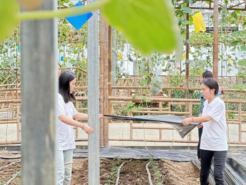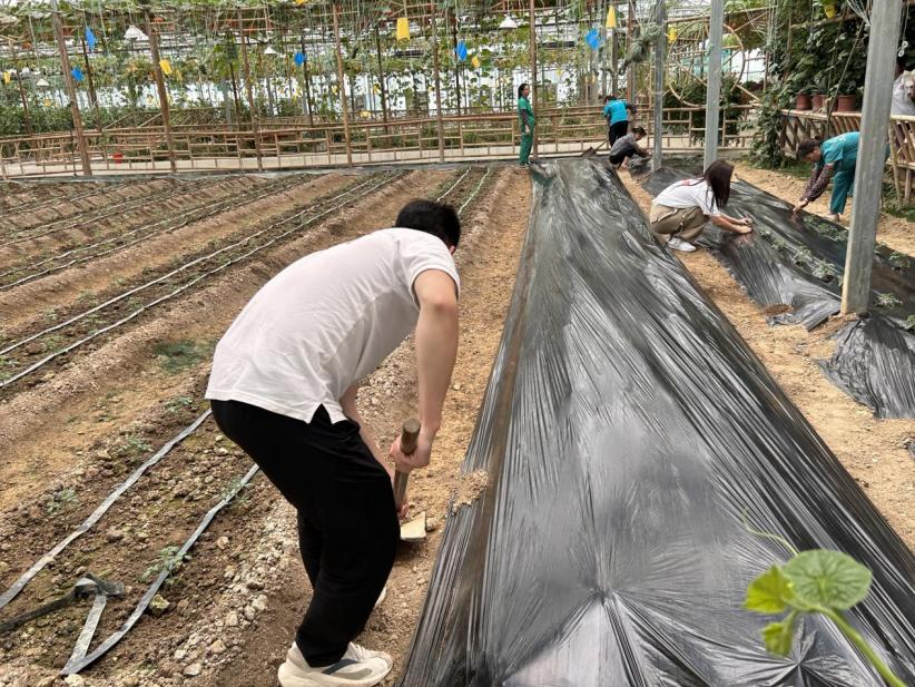 队员们积极帮助村民做些果蔬的耕种、采摘等力所能及的事情。虽然都是一些小事,但也希望能让繁忙中的村民们有一丝的休息时间。此外,在忙于农活的过程中,队员们与工作人员进行了交流,知晓了她们选择留在家乡的原因以及花茂村的发展情况。同时,队员们也在助农中锻炼了自己的动手能力,学到了更多社会知识,对乡村振兴有了更深入地了解,也感悟到了艰苦奋斗的精神,以及新时代青年的社会责任感和使命感。