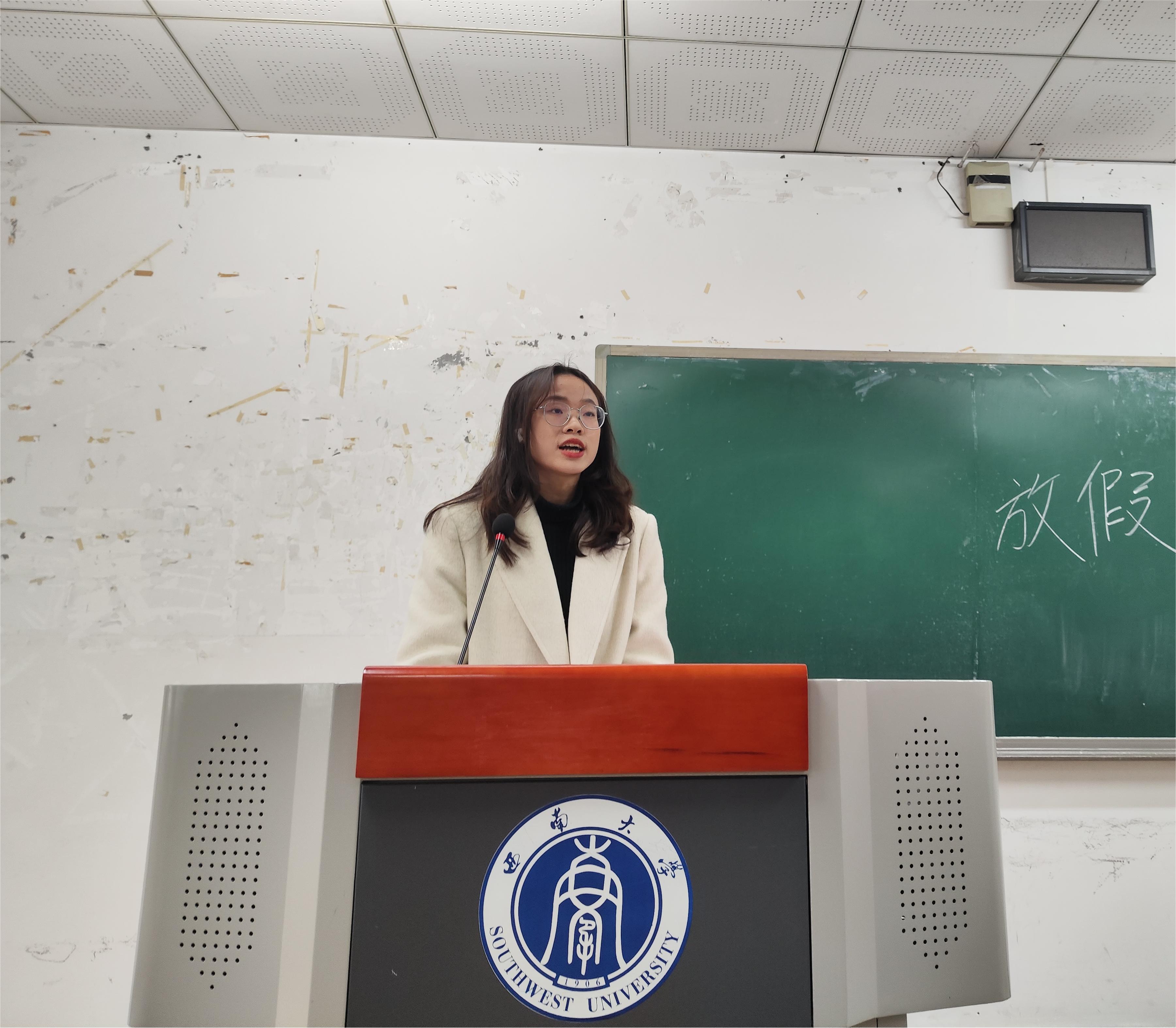 会议伊始,吴老师强调了参与科研训练、参加课外科技竞赛对于本科生专业学习的重要性,并邀请到了学院2020级周庆庆同学做科研经验分享。周庆庆同学从“大创项目”、“互联网+”、“挑战杯”、“论坛参与”四个方面展开分享,并为同学们提供了信息收集、团队组成、项目选题等方面的方法技巧,鼓舞2023级的师弟师妹们踔厉奋发,砥砺前行。吴老师对周庆庆同学的经验分享给予了充分肯定,进一步介绍了学院本科生学业支持计划、研学支持计划,动员同学们跨出第一步,永攀学术高峰。
