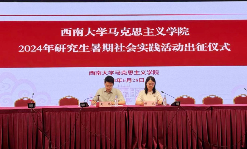 6月28日,必赢3003no1线路检测中心在505报告厅举行了2024年研究生暑期社会实践活动出征仪式,学院研究生教学办公室主任兼教学秘书谢忱、研究生辅导员黄林出席,实践队全体成员参加。