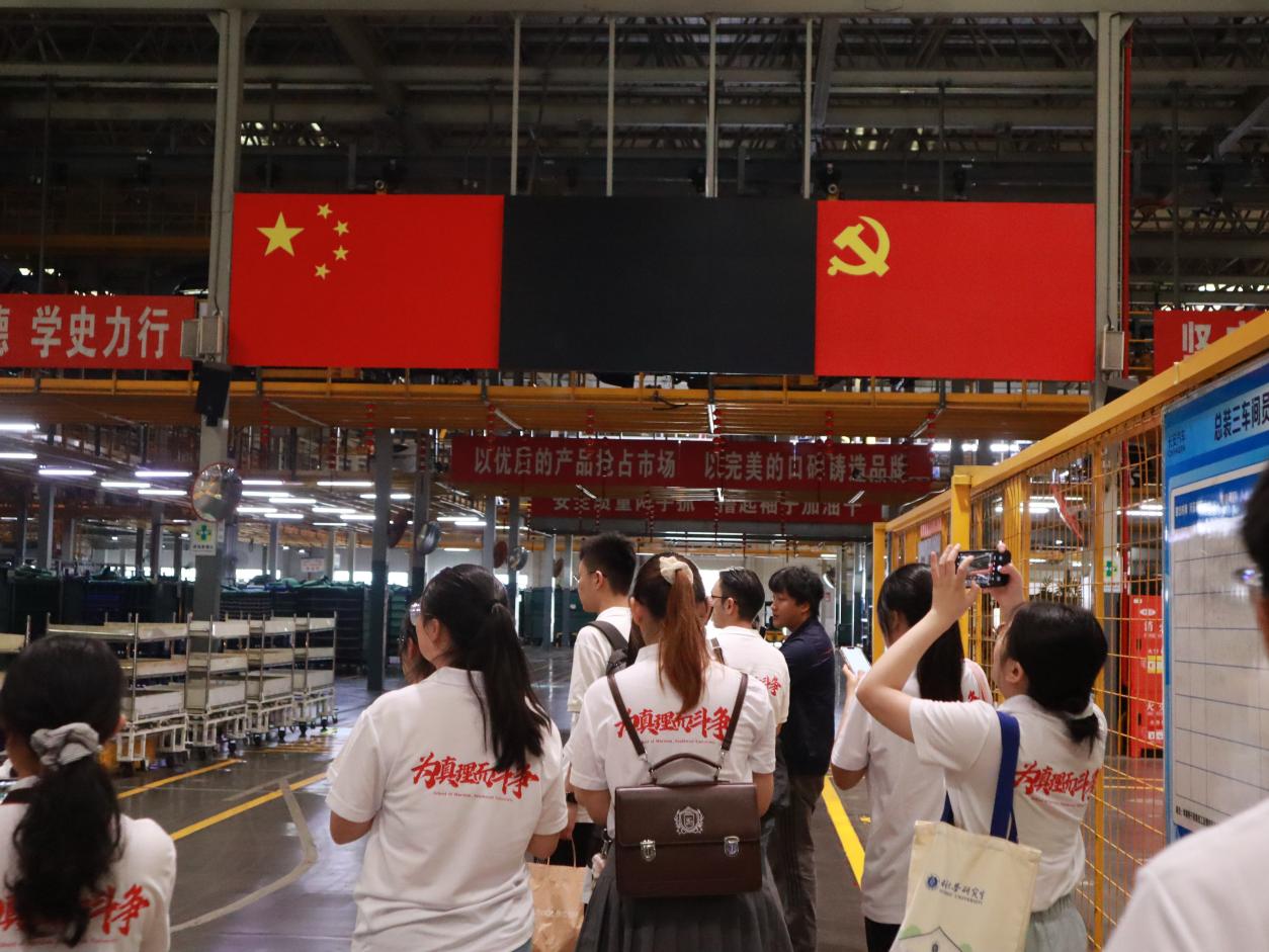 实践队成员深入工厂总装车间,参观了整车生产线的运作。从生产流程到质量控制,从人力运作到智能智造,实践队成员对现代制造业以及新质生产力有了更直观、深入的理解。此外,实践队成员还就党建引领、生产管理与工厂负责人展开了互动交流。