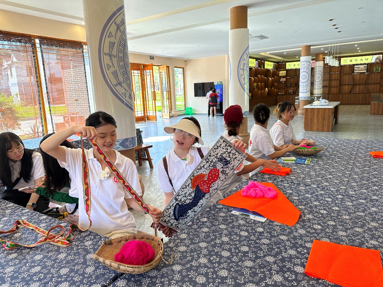 7月7日上午,队员们来到古蔺苗族文化博物馆。该博物馆以实物为载体展示了苗族历史、民间文学、和苗族信仰。通过参观,队员们深刻认识到古蔺苗族文化博物馆是古蔺苗族文化传承的重要阵地,更是民族团结的一个教育基地。当天下午,队员们来到了苗绣展厅并亲自体验了苗绣,切实感受了苗族刺绣魅力。