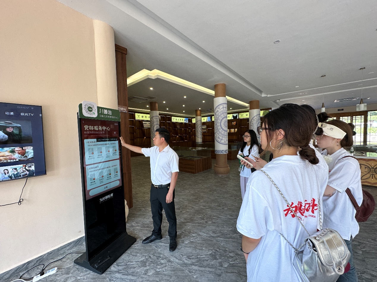7月6日上午,队员们与大寨苗族乡富民村村委会党支部副书记进行了交流。通过交流,队员们了解到富民村不仅运用“川善治”乡村治理数字化平台来解决村民的需求,还运用家庭积分制以鼓励村民们自觉为村里做事,共同建设美丽乡村。