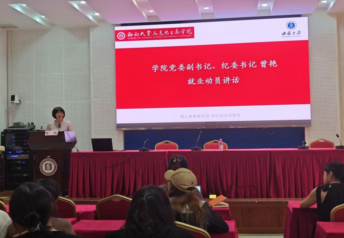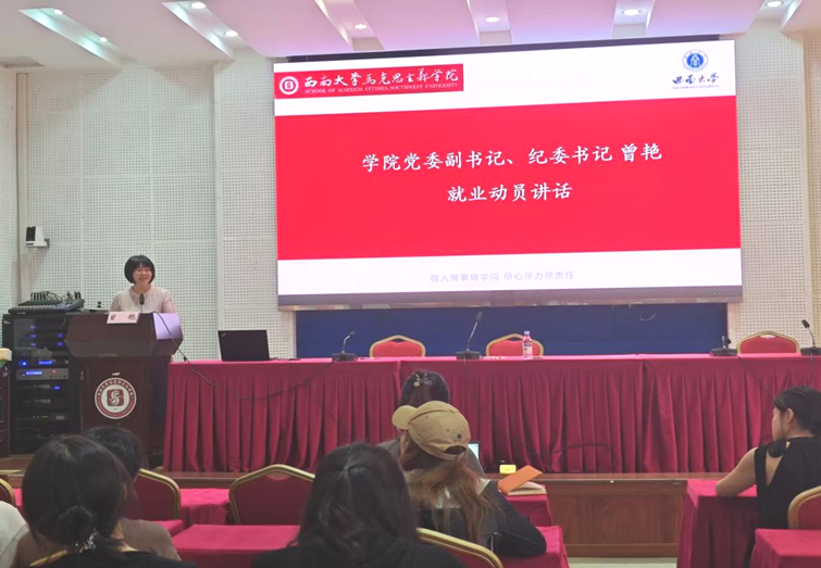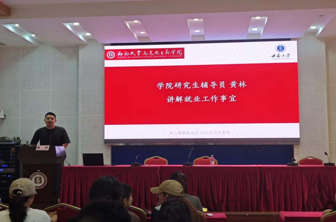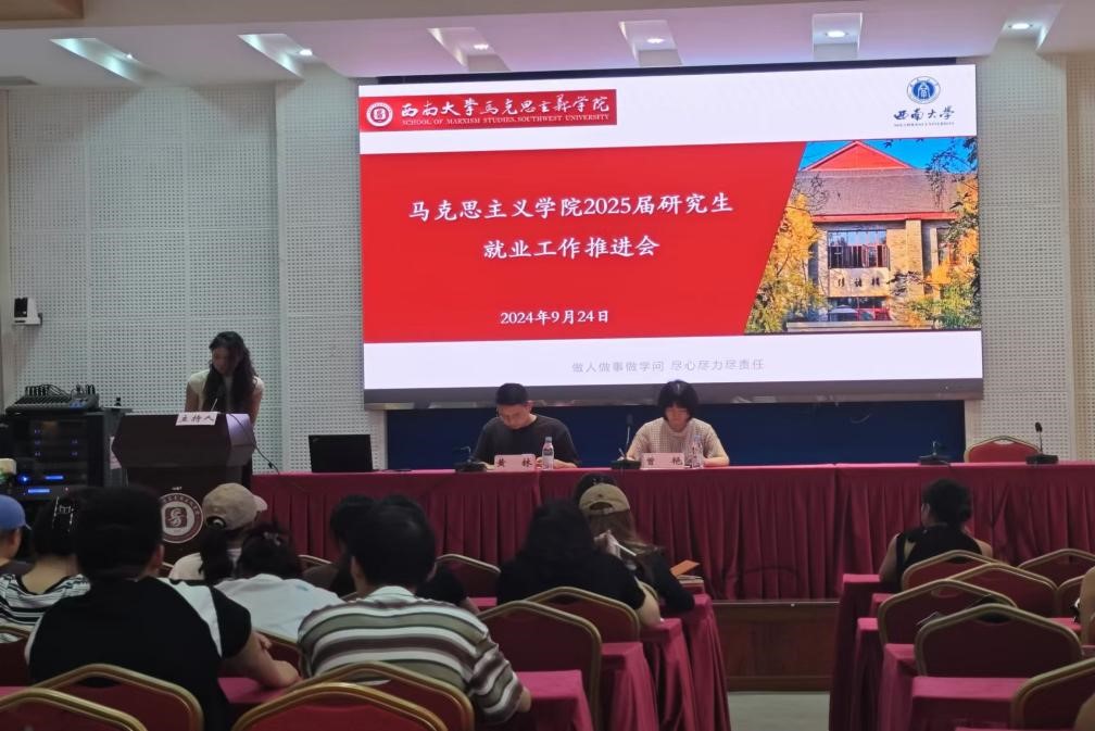 为促进学院2025届研究生高质量充分就业,9月24日下午,学院在501报告厅举行了2025届研究生就业工作推进会。学院党委副书记、纪委书记曾艳、研究生辅导员黄林出席会议,2025届全体研究生参加。会议由研究生团总支、研究生会工作人员毕雅璐主持。