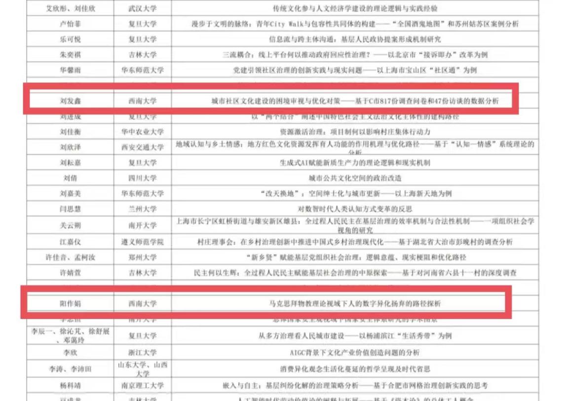在由复旦大学必赢3003no1线路检测中心主办的“治国理政——中国共产党的理论与实践”第八届全国大学生交流论坛中,我院本科2022级马克思主义理论专业阳作娟的文章《马克思拜物教视域下人的数字异化扬弃的路径探析》、2023级马克思主义理论专业(红岩菁英班第四期学员)刘发鑫的文章《城市社区文化建设的困境审视与优化对策——基于C市817份调查问卷和47份访谈的数据分析》,在来自全国各高校本科生的五百余篇论文中脱颖而出,均荣获优秀论文二等奖并受邀参与论坛交流。
