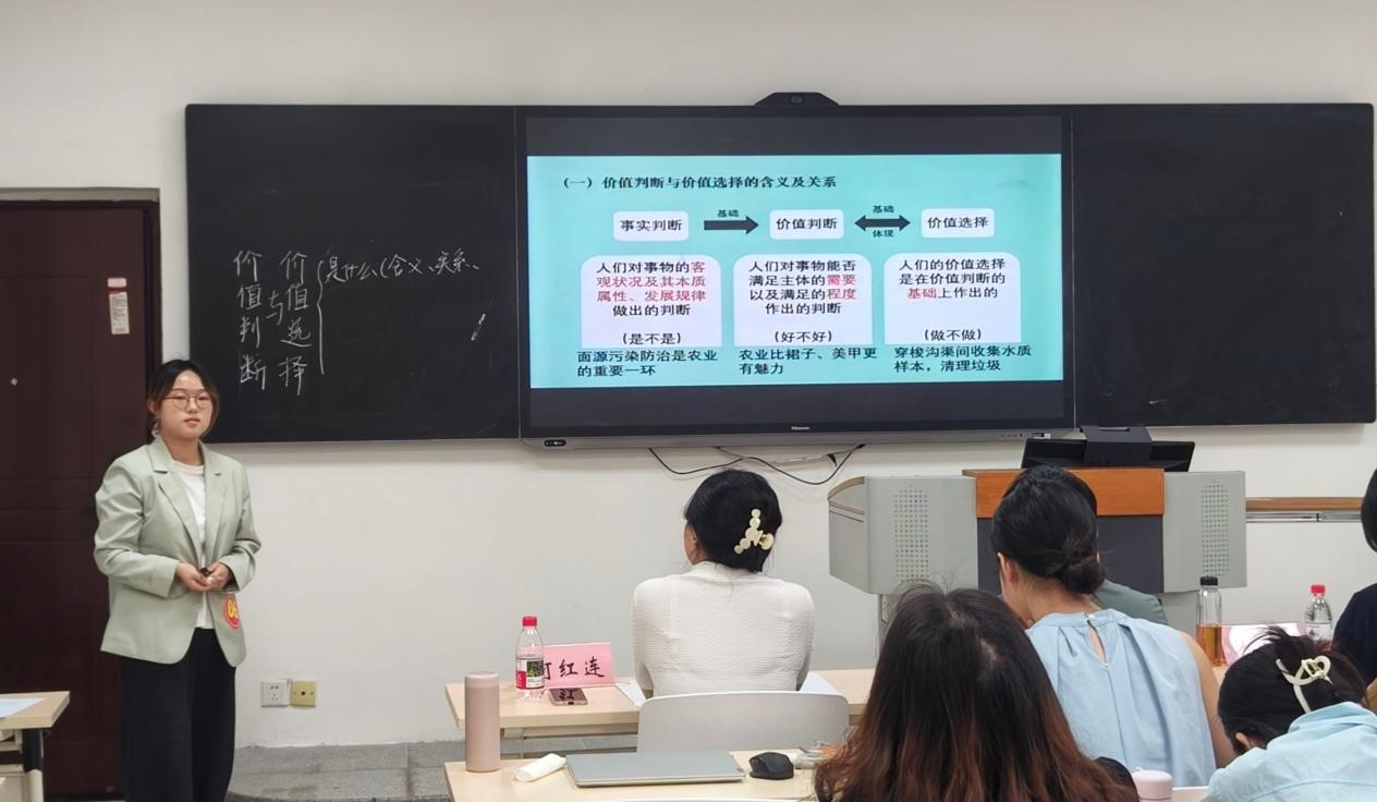 三位评委老师对选手们的教学技能表示了肯定,并提出了几点建议:一是要充分发挥研究生角色的优势,拓展教学内容的深度与广度,设置有条理性的议题;二是要理论联系实际做思政课教学,利用本地特色、联系学生生活、具有影响力的案例,设计与实践紧密关联的课堂问题和课后作业;三是优化设问技巧,善于引导和追问,通过多元点评激发学生的思考,促进生成式课堂的达成。