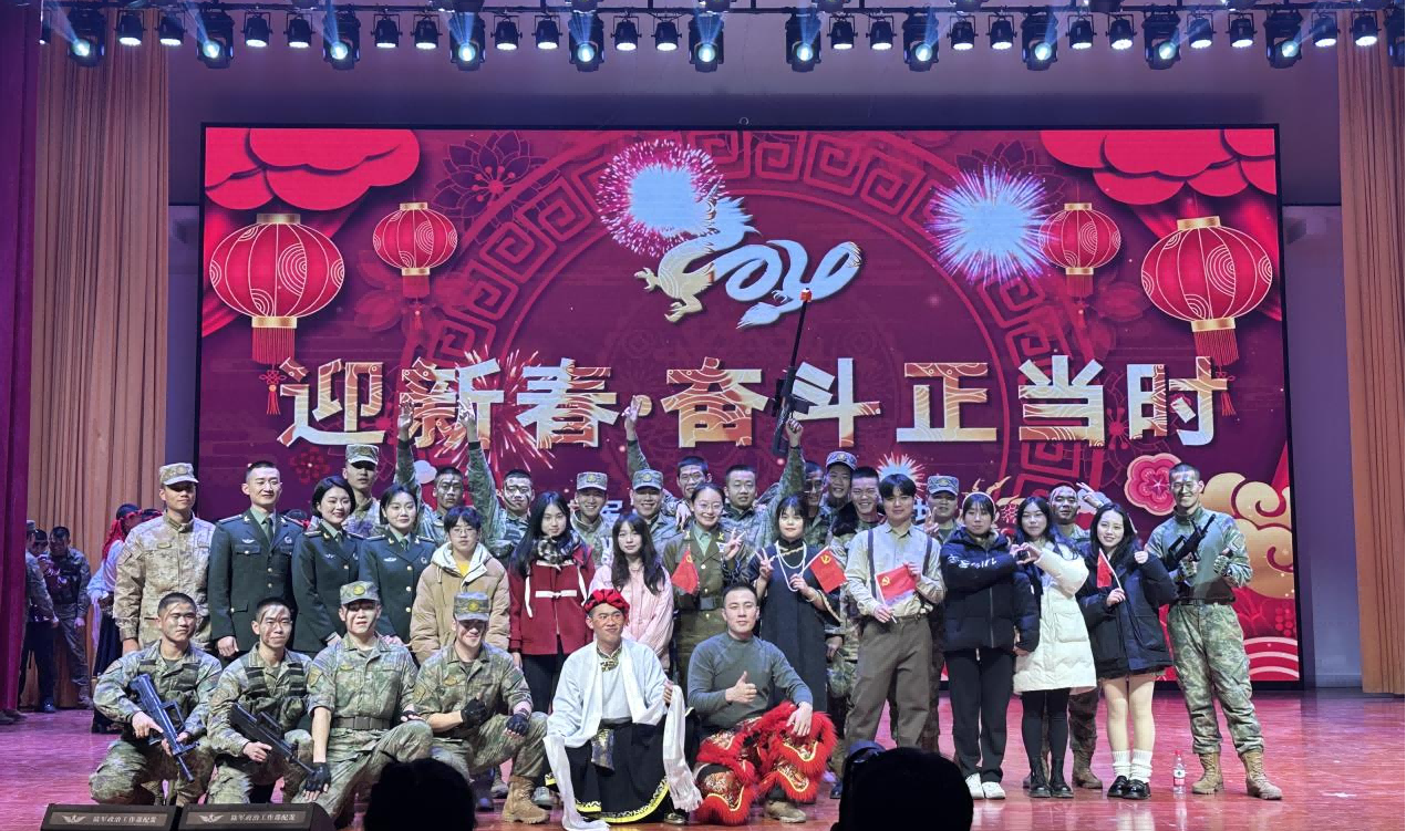12月28日,必赢3003no1线路检测中心青马剧社应陆军勤务学院邀请,在社团指导老师罗艺的带领下,前往参加在陆军勤务学院大礼堂举办的“迎新春,奋斗正当时”迎新晚会。