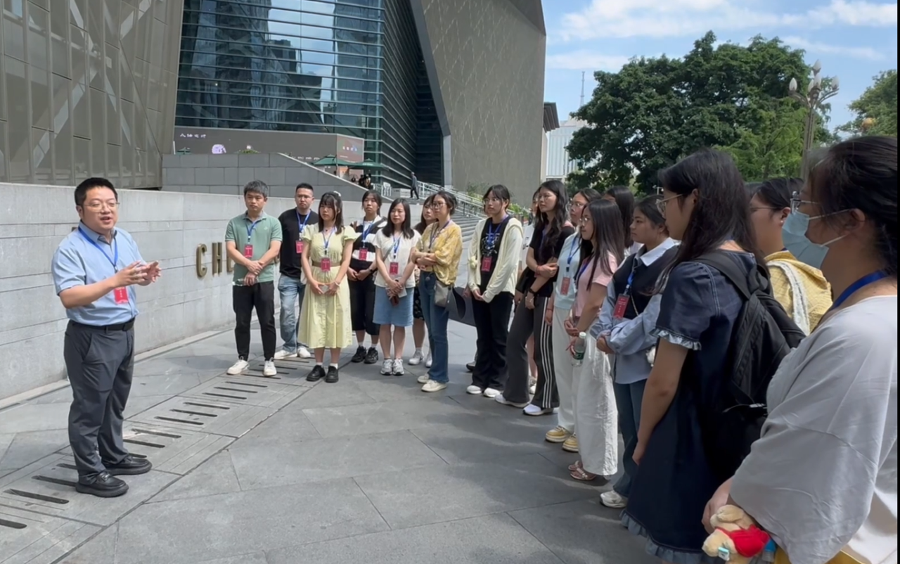5月28日,实践研修团队以成都博物馆的参访作为收官之站。在这座展示“天府之国”历史与文化的“大学校”中,学习城市历史文化,了解成都的前世今生。通过讲解员对“一年成聚,二年成邑,三年成都”的解读,感受这座城市名字背后蕴含的深厚历史积淀和演变轨迹,感悟这座千年古城从聚落到都市的状况历程。师生们从馆藏陶俑中体察古代成都的生活百态,于城市营建中领略古人智慧,在中国皮影展与木偶展中品读民间戏剧与木偶表演的文化内涵与发展历程。此次深度参访,通过实地、实物学习,使师生对成都作为历史文化名城的独特地位有了更直观深刻的理解,并对博大精深、璀璨多姿的巴蜀文化产生了强烈共鸣。在成都博物馆门前,学院副院长唐斌教授还围绕“两个结合”为团队成员即兴讲授了场馆中的思政微课。